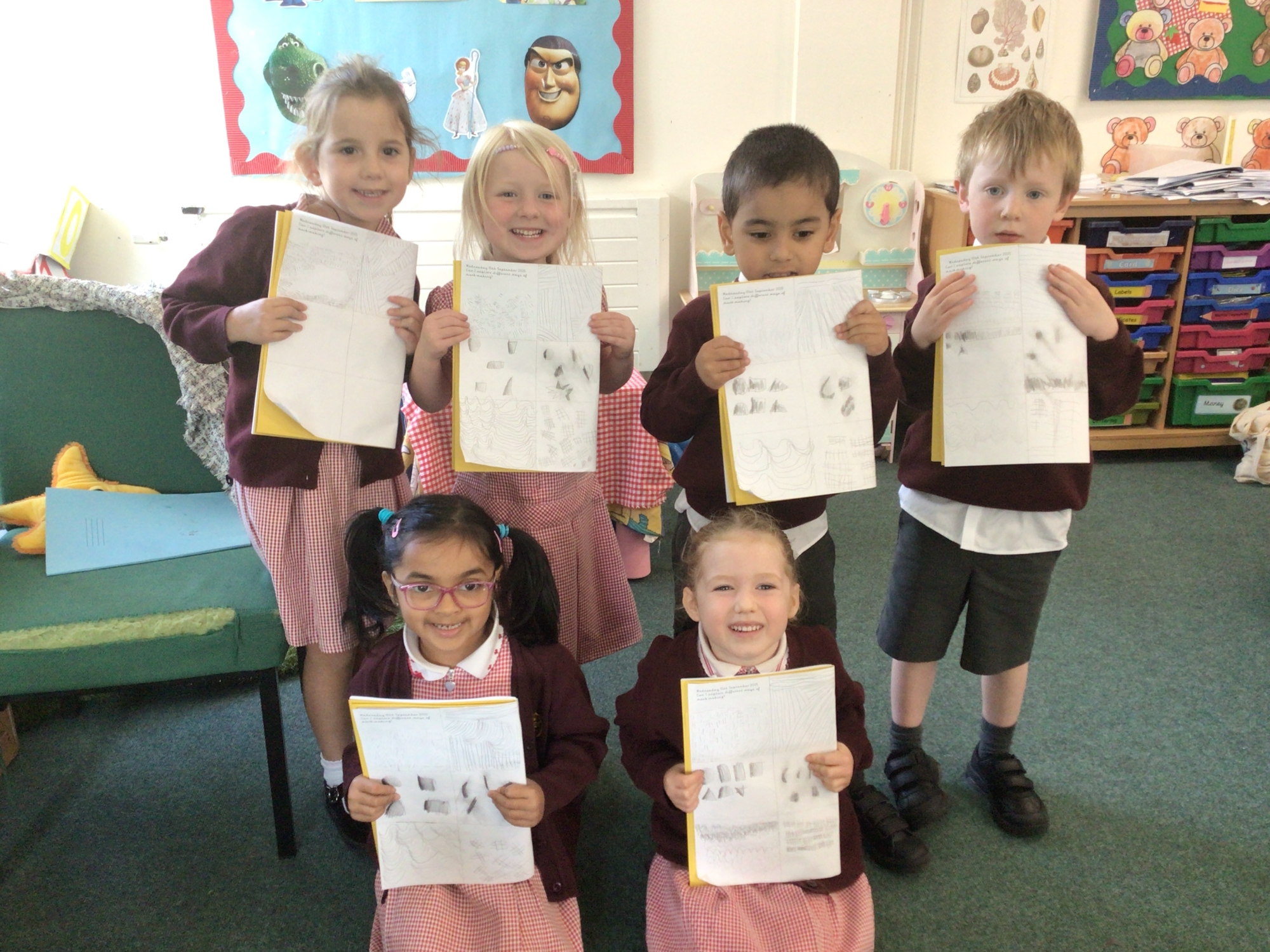 Friday morning art lesson! We learnt all about mark making using our pencils. We had lots of fun sketching, shading and smudging using our fingers too!